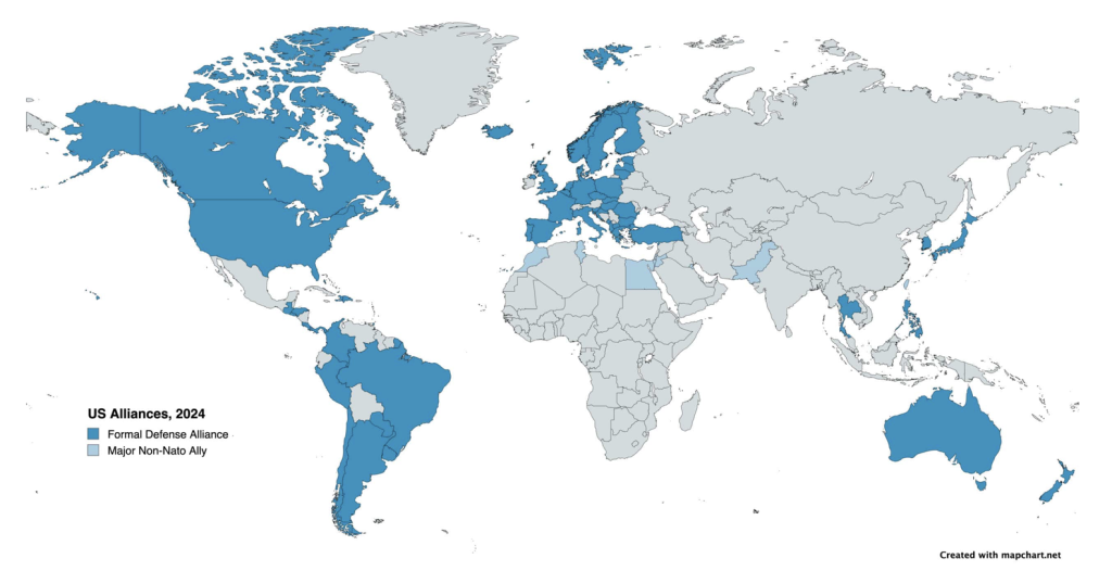 A limited number of countries have defense arrangements with the U.S., including NATO members that enjoy the Article 5 collective defense agreement, and other bilateral treaties such as the U.S.–Japan Mutual Defense Treaty, the Mutual Defense Treaty with South Korea, and the ANZUS Treaty with New Zealand and Australia.